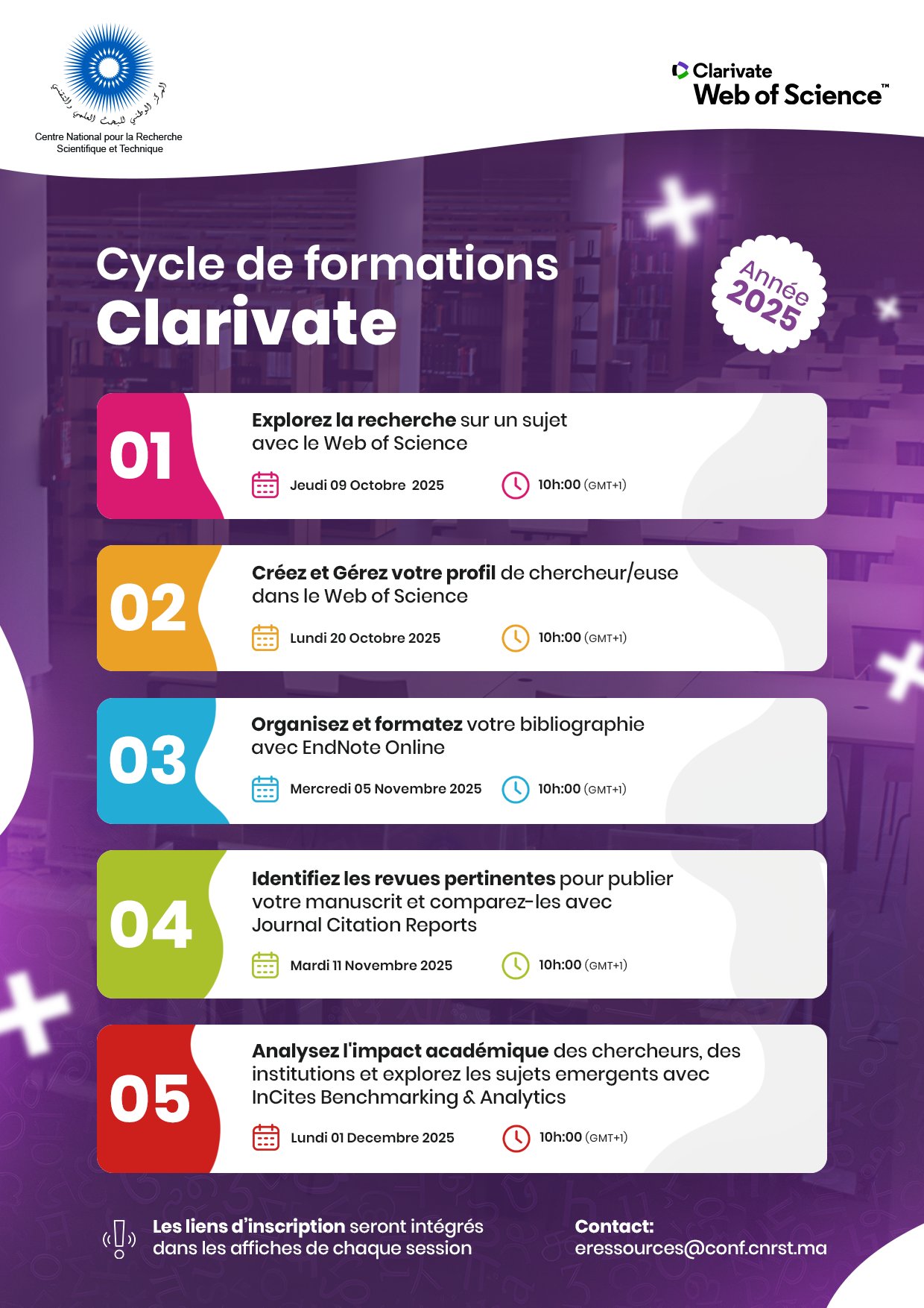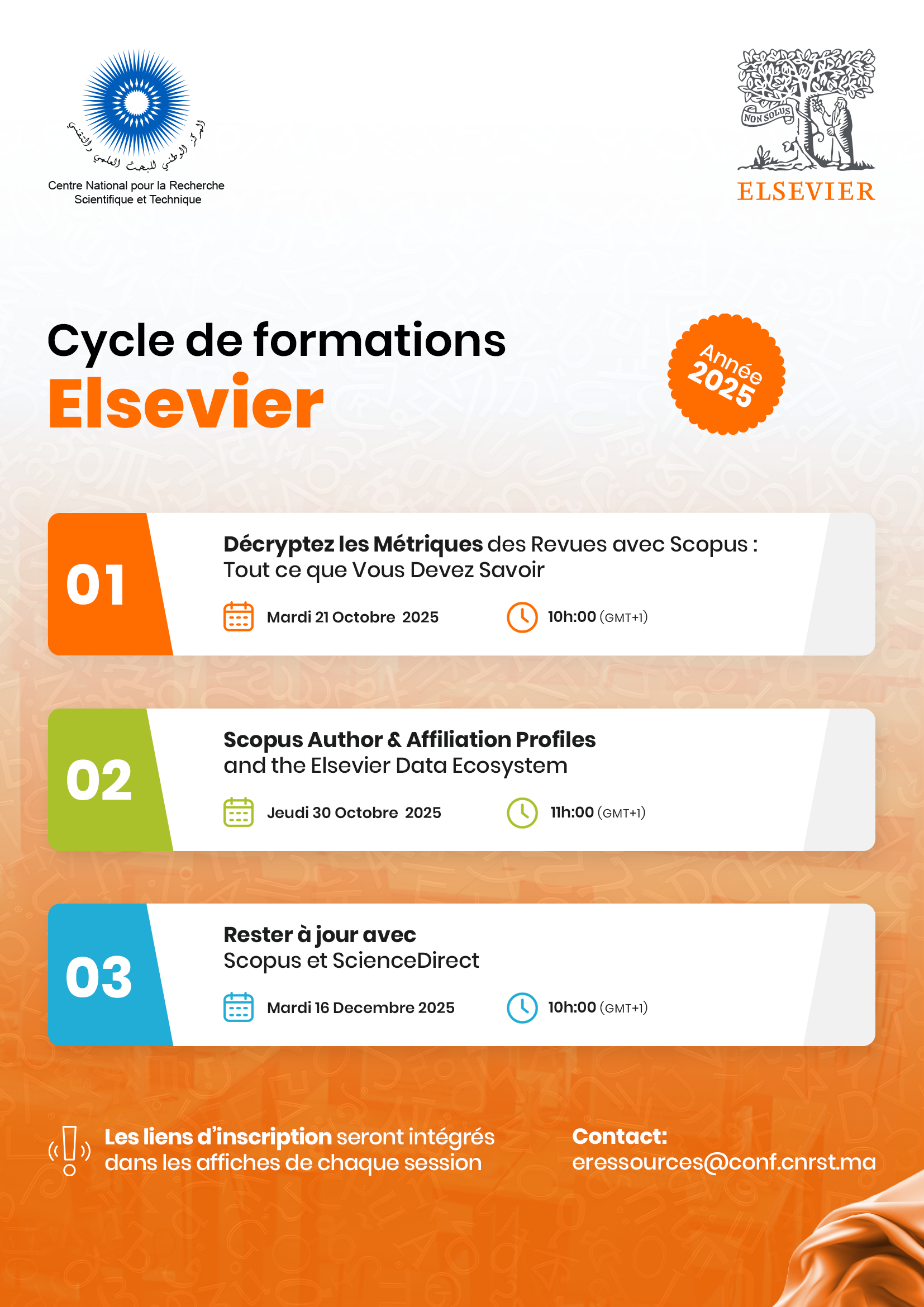 l’IMIST relevant du CNRST, en collaboration avec Elsevier et Clarivate, organise un nouveau cycle de formations pour la période octobre-décembre 2025.